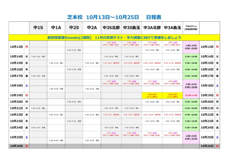 第2回学調に向けた取り組みです。月末からは最後の定期テスト対策が始まります。