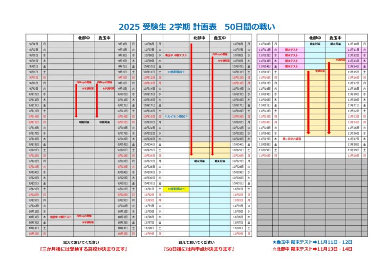 11月11日~14日…期末テスト[麁玉中・北部中]