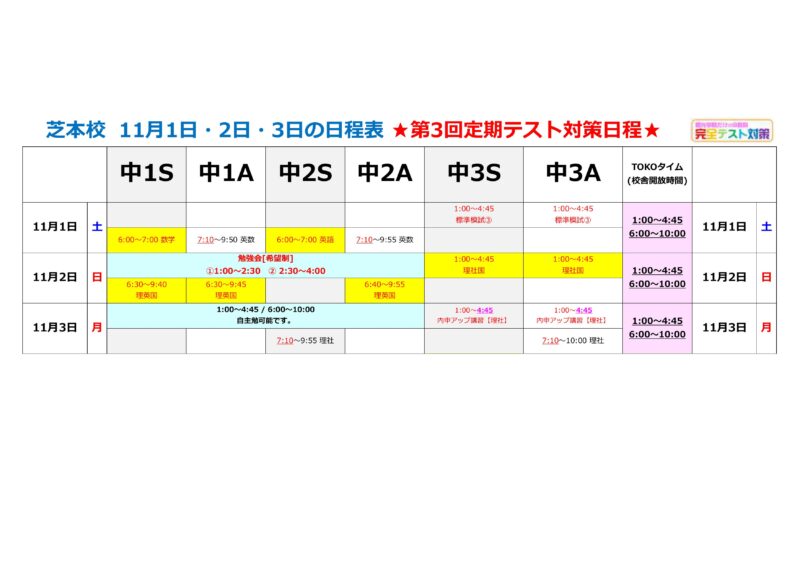 本日日曜日は『中1・中2限定の祝日勉強会』を実施します。