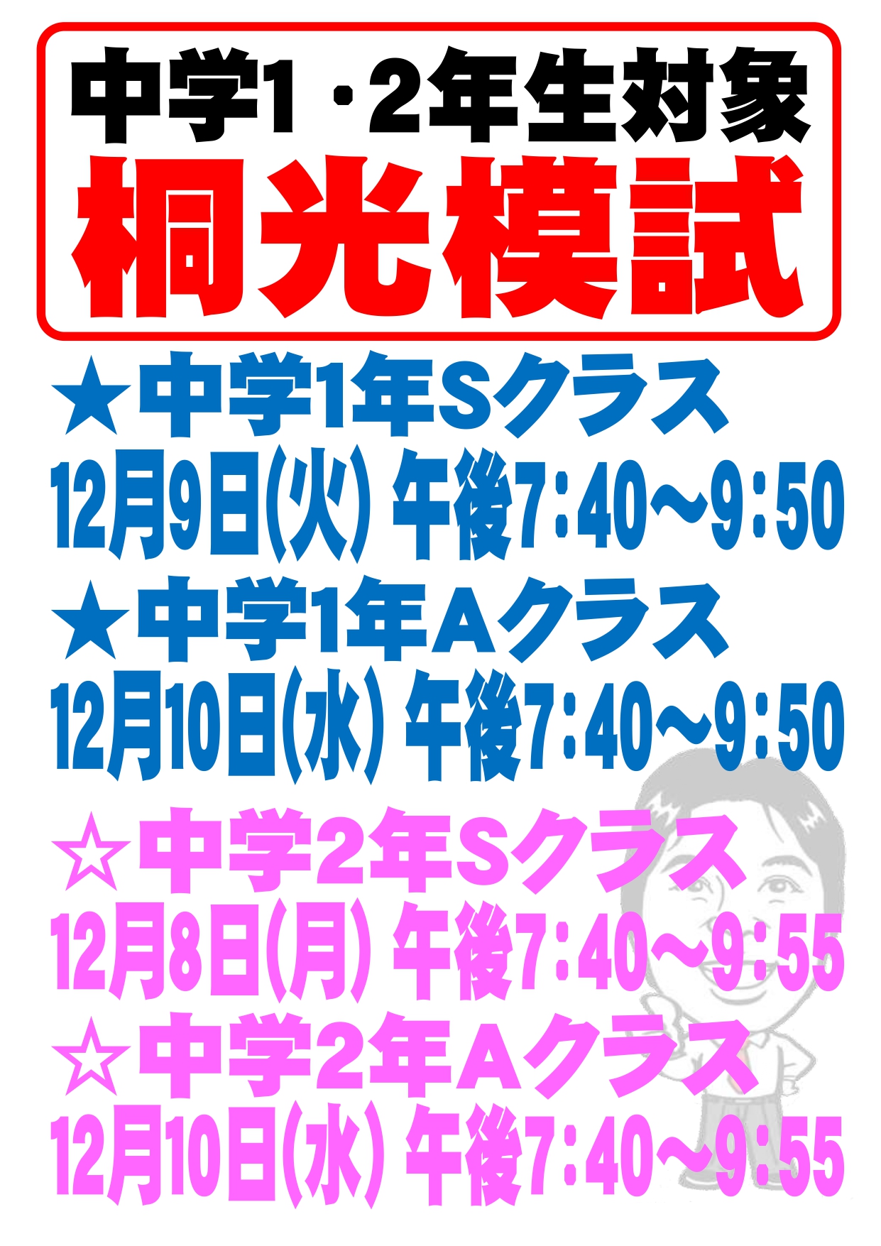 12月8日(月)・9日(火)・10日(水)は今年最後の『桐光模試』