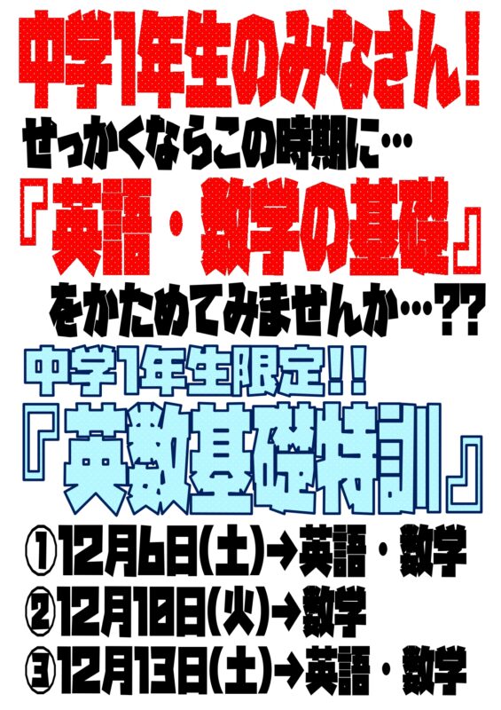 中学1年生の冬期講習『最初のステップ』がこちら!!