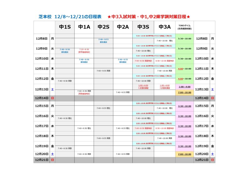 今週からの日程を載せておきます。