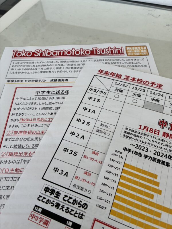 生徒の皆さんには今週月曜の授業よりお子様にお渡ししています。