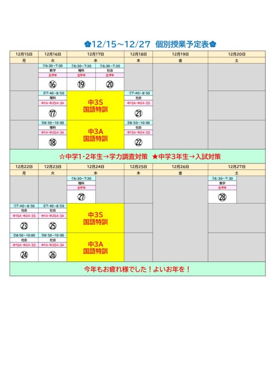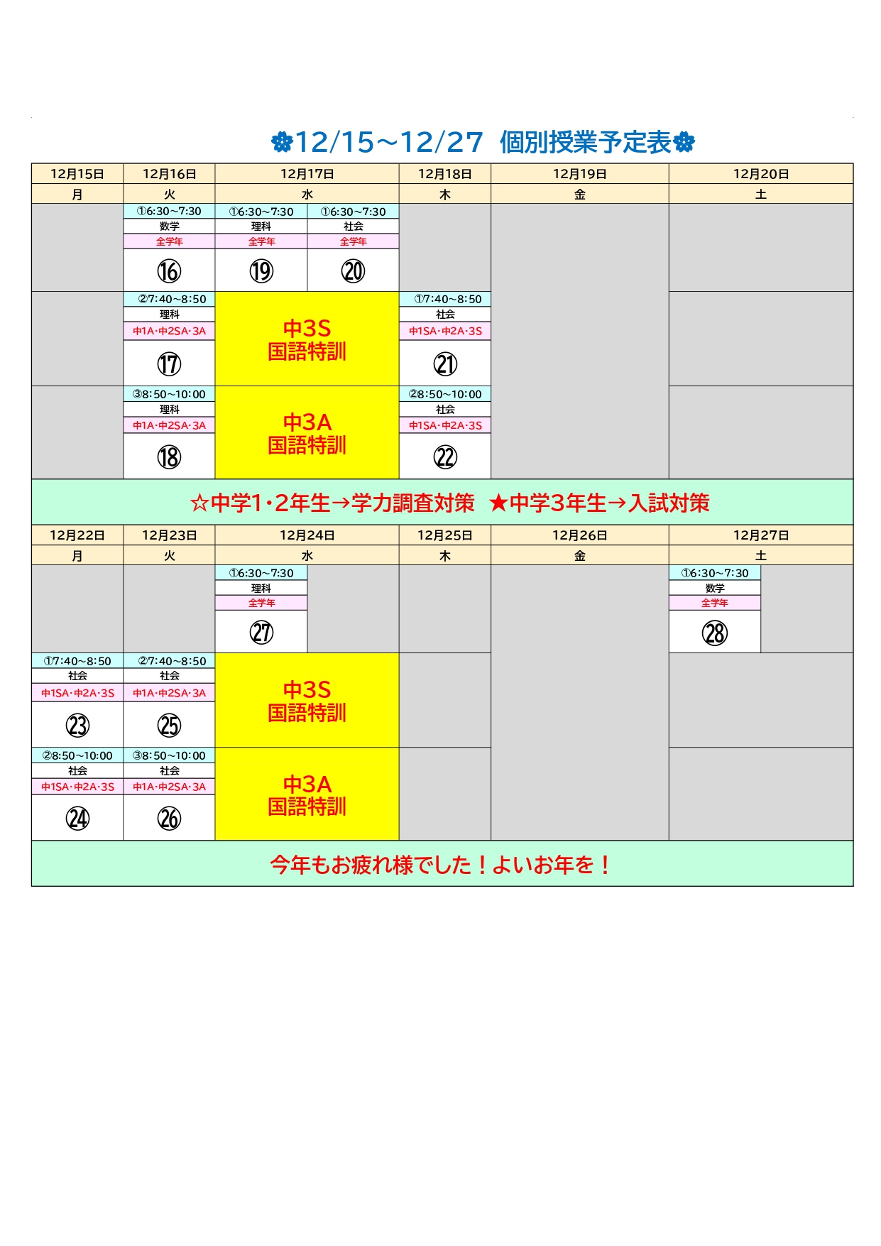 冬休み明け、1月8日の『学力調査』に向けて準備をしていきます。