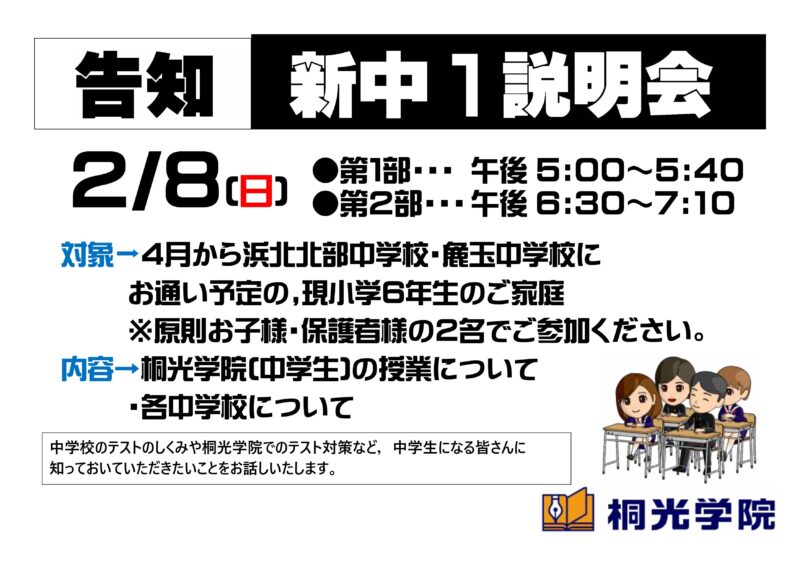 浜松市の学習塾、桐光学院。小学生は個別指導、中学生は集団授業+個別指導で学校の授業に合わせて学習をサポート!