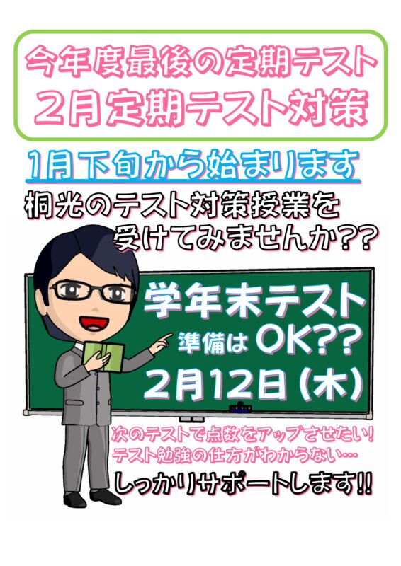 次回2月12日に各中学で実施される『2月定期テスト』に向けて準備に入ります。