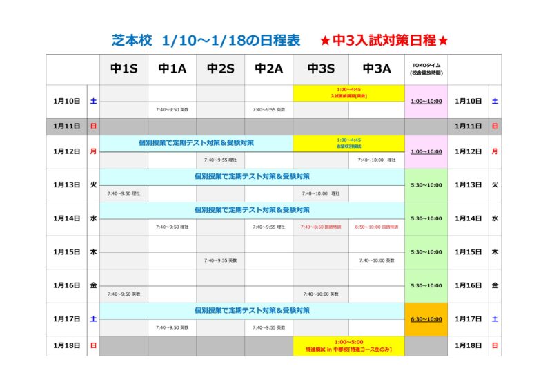 2月12日の『定期テスト』に向けて準備をしていきます。