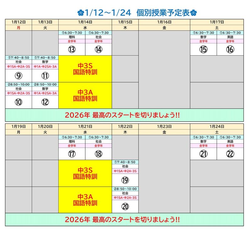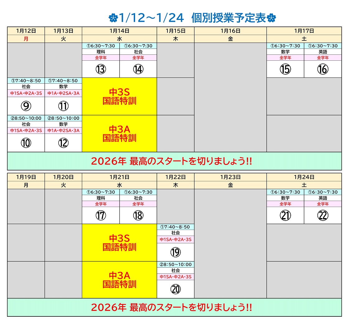 2月12日の『定期テスト』に向けて準備をしていきます。