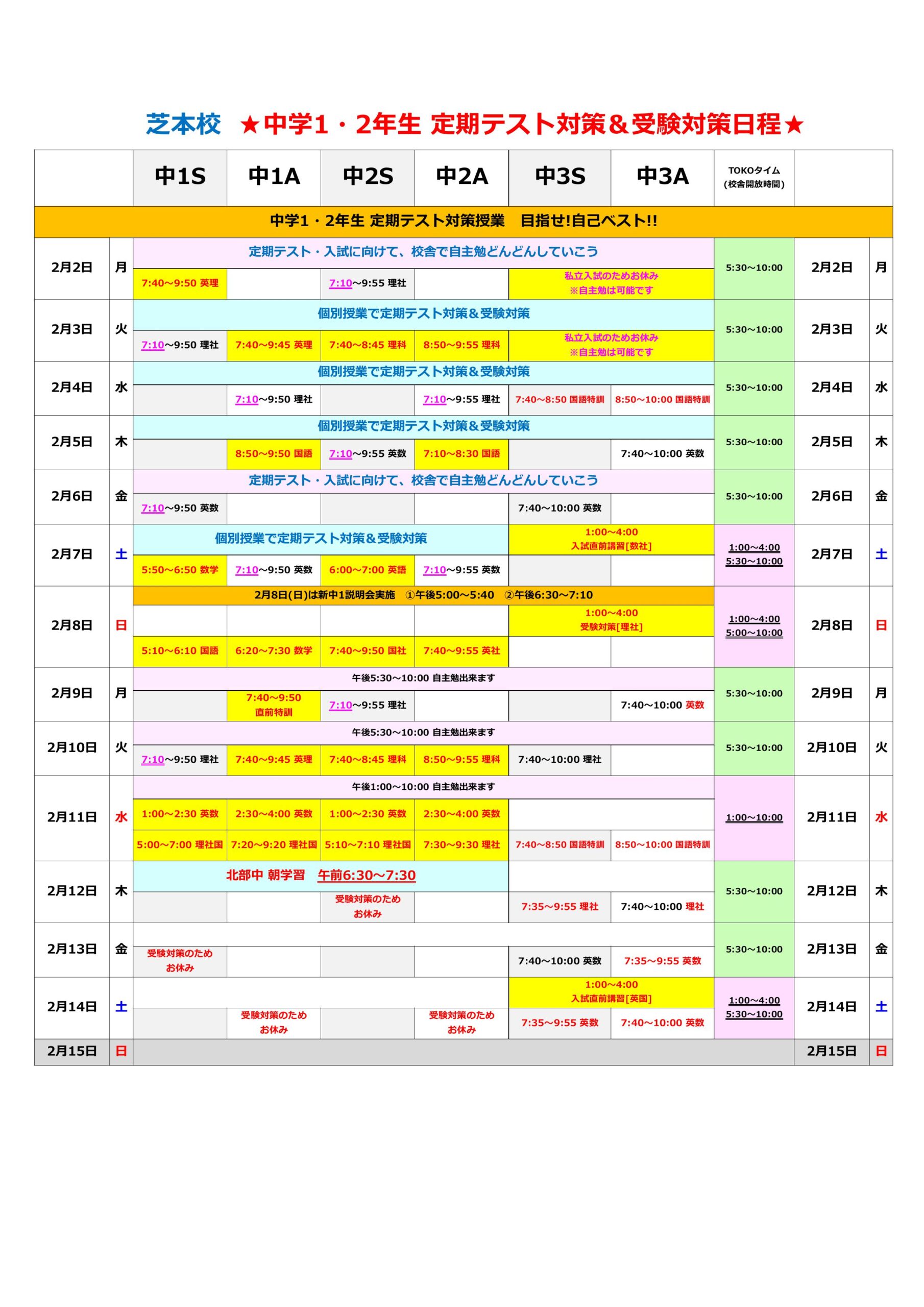 今週末から来週にかけてのテスト対策と受験対策の日程表を載せておきます。