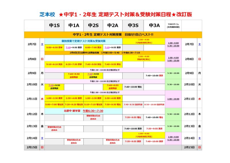 今週のテスト直前対策と受験対策の日程表を載せておきます。