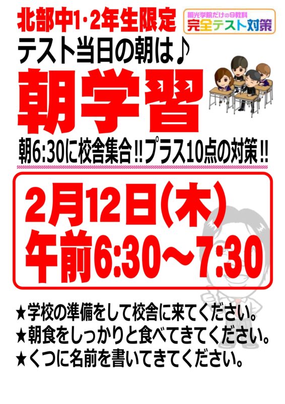 普段より早く起きることは大変ですがこの朝学で[10点アップ]を目指します!!
