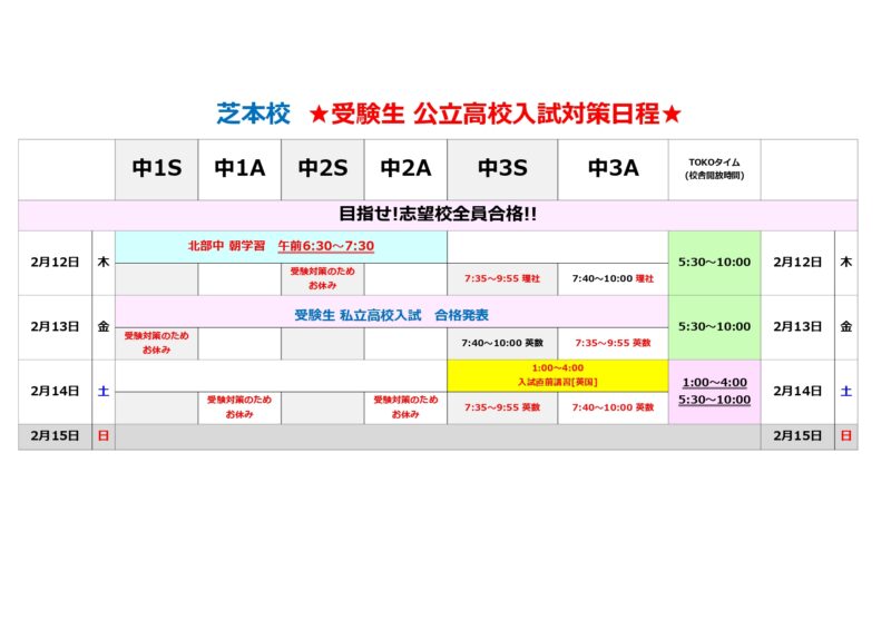 中学1・2年生がメインだった勉強から最後のアンカー受験生にバトンタッチです。