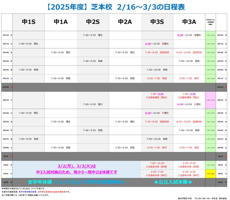 受験生は[公立高校入試]まで残り2週間となりました。