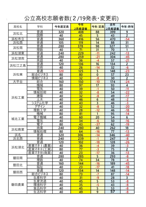 そして夕方には各高校の志願者数が発表になっています。