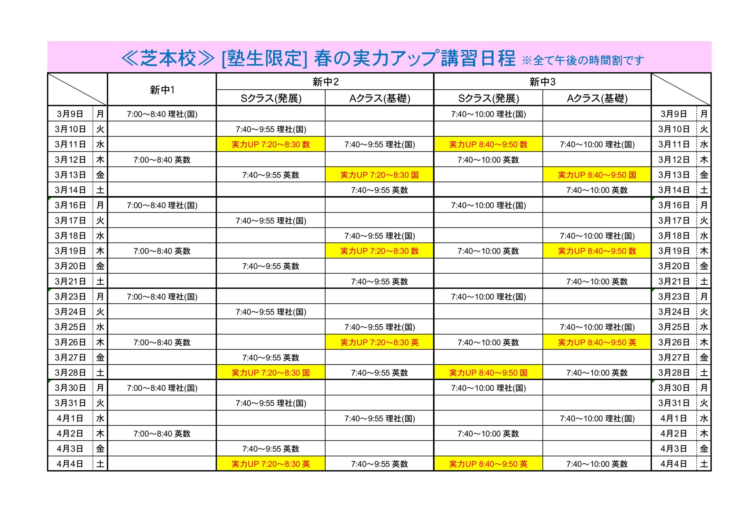 新中学2年生・3年生は今週より『実力アップ講習』が始まります。