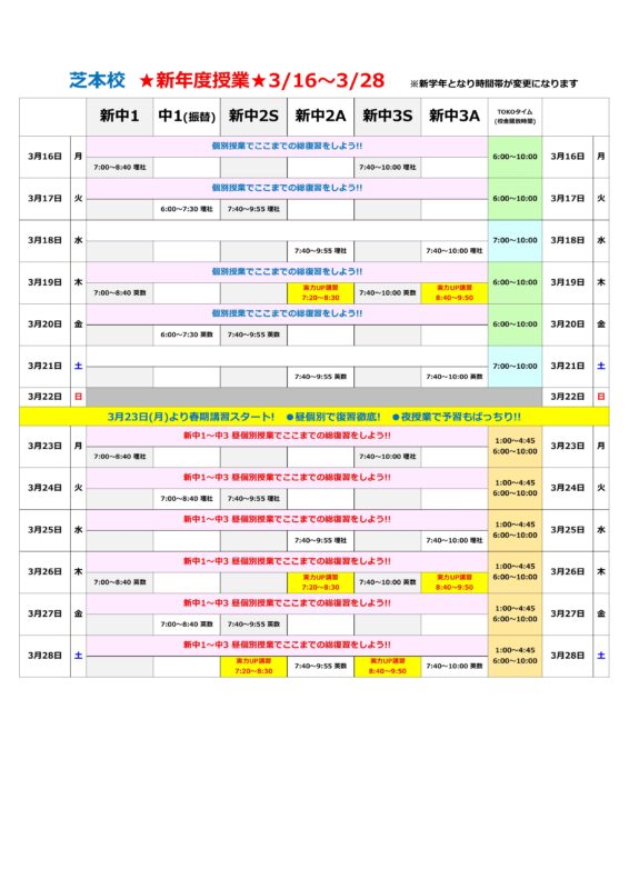 3月16日(月)からの日程を載せておきます。