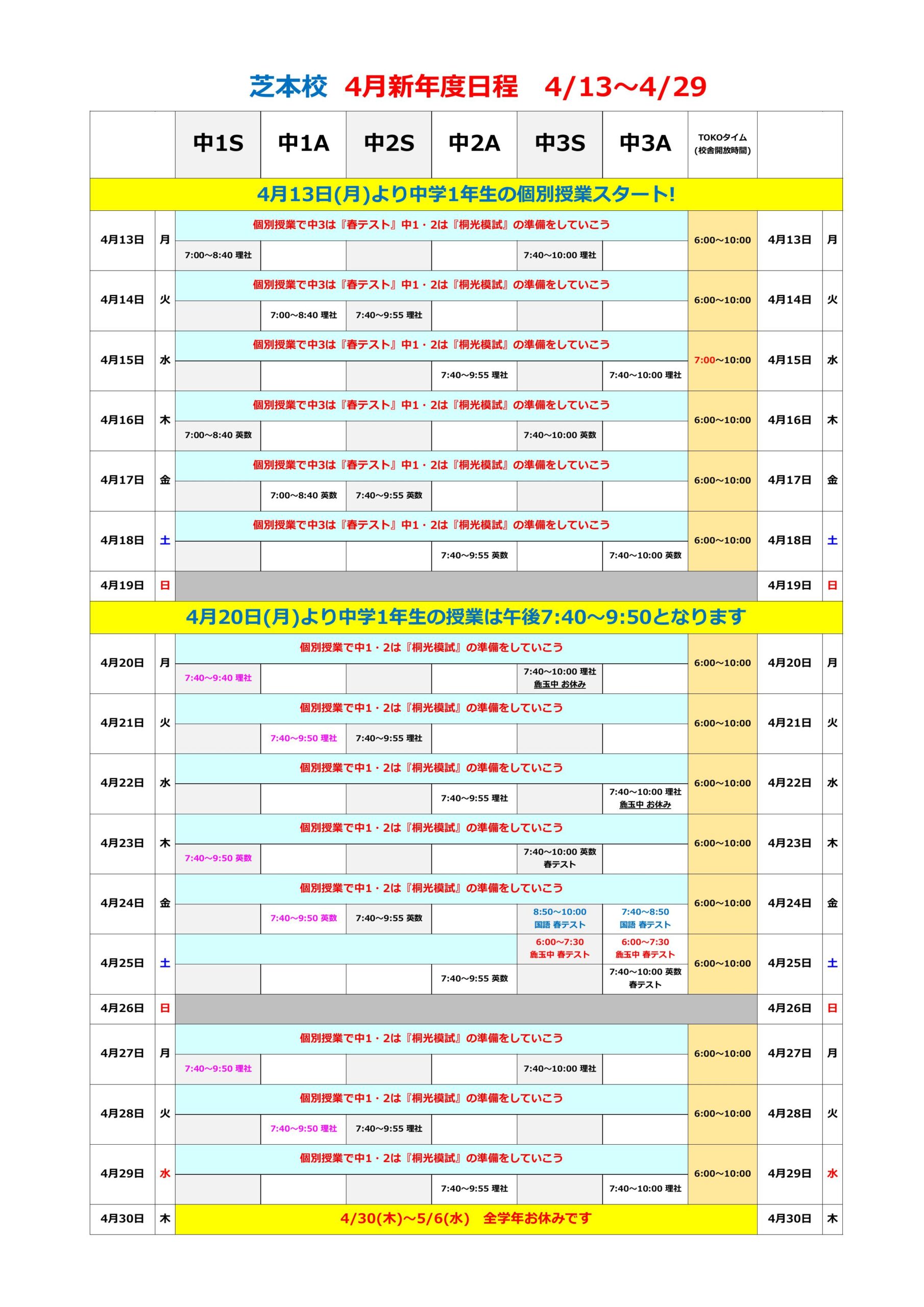 4月16日(木)からの日程を載せておきます。