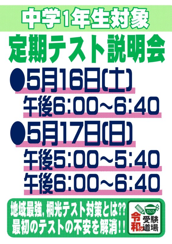中学校の定期テストの特徴や桐光のテスト対策について説明させて頂きます。