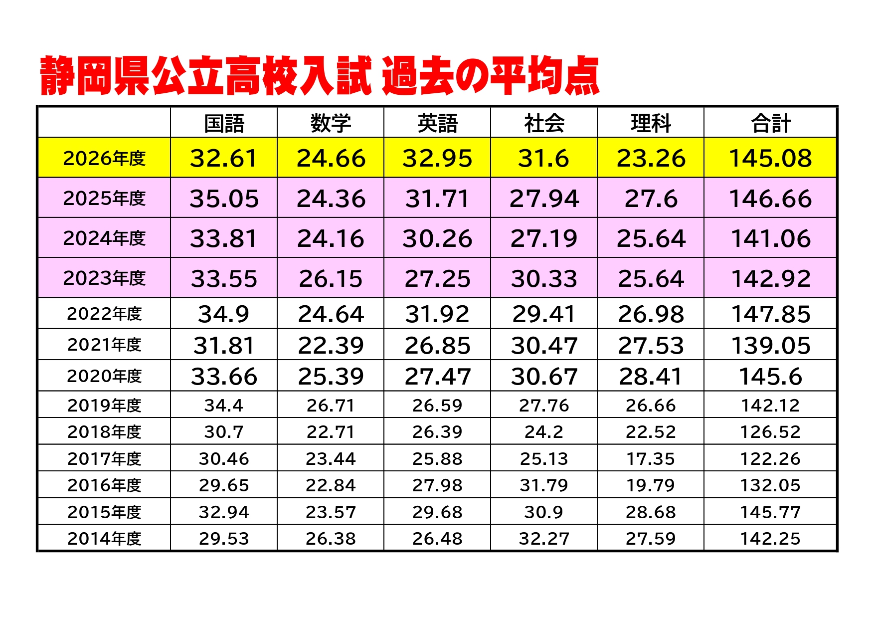 先日、昨年度の公立高校入試の平均点が発表されました。