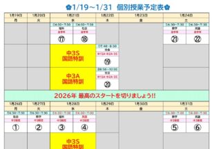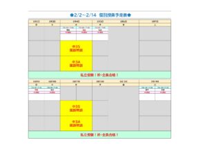 BLOG2026/02/042/2~2/14 個別日…今週・来週は中学3年生限定の個別weekになります。 日程表を載せておきます。