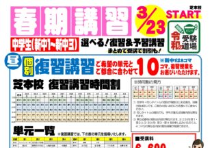 BLOG2026/03/10中学2・3年塾生限定 春…新中学2年生・3年生は今週より『実力アップ講習』が始まります。 3月にしっかりと力をつけて4月に最高のス…