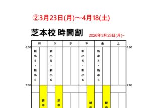 BLOG2026/03/22新中学1年生 要CHEC…今週3月23日(月)から新中学1年生の時間割が変更となります。 3月23日(月)からの時間割です。 【新…