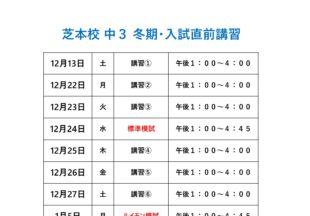BLOG2025/12/11今週後半[12.11~]…今週後半からの日程を載せておきます。 中学3年生はいよいよ今日から中学の三者面談が始まります。 志望校が…