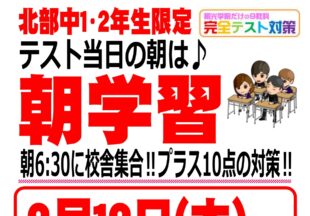 BLOG2026/02/132月 定期テスト対策にご…1月下旬から実施してきた期末テスト対策 昨日の北部中の朝学習をもって終了しました。 この二週間、日曜日も…