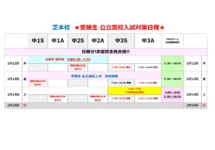 BLOG2026/02/16今週[2.16~]の日程…今週からの受験対策の日程表を載せておきます。 受験生は[公立高校入試]まで残り2週間となりました。 ま…