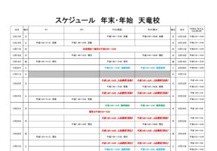 BLOG2025/12/13天竜校 年末年始の日程 …年末年始の日程です。 特に年始はどの学年も変則的になります。 来週15日からお子様に配布していきます。