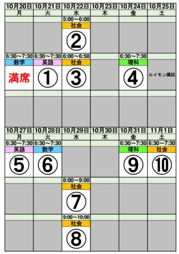 11/1以降はテスト対策に入っていきますので期末テスト終了までは個別授業はなくなります。