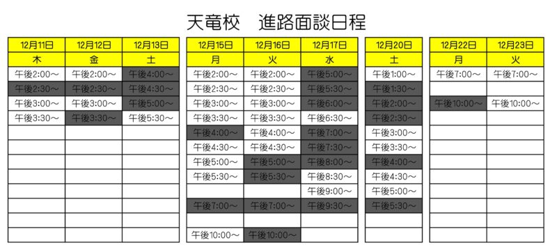 学校面談後,そのまま塾に足を運べるように午後の時間帯を確保しています。