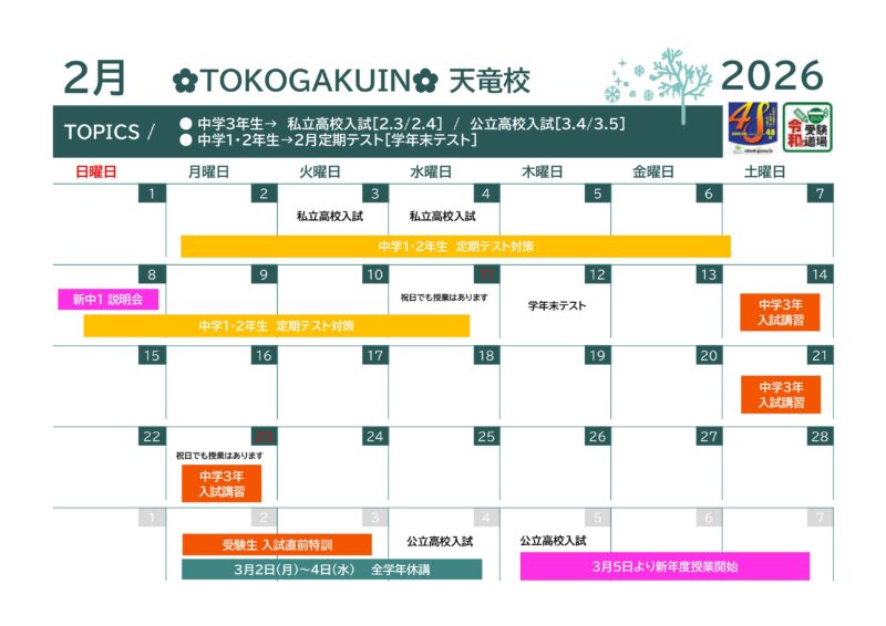 そして受験生は2月の私立入試、3月の公立入試に向けてラストスパートをかけます。