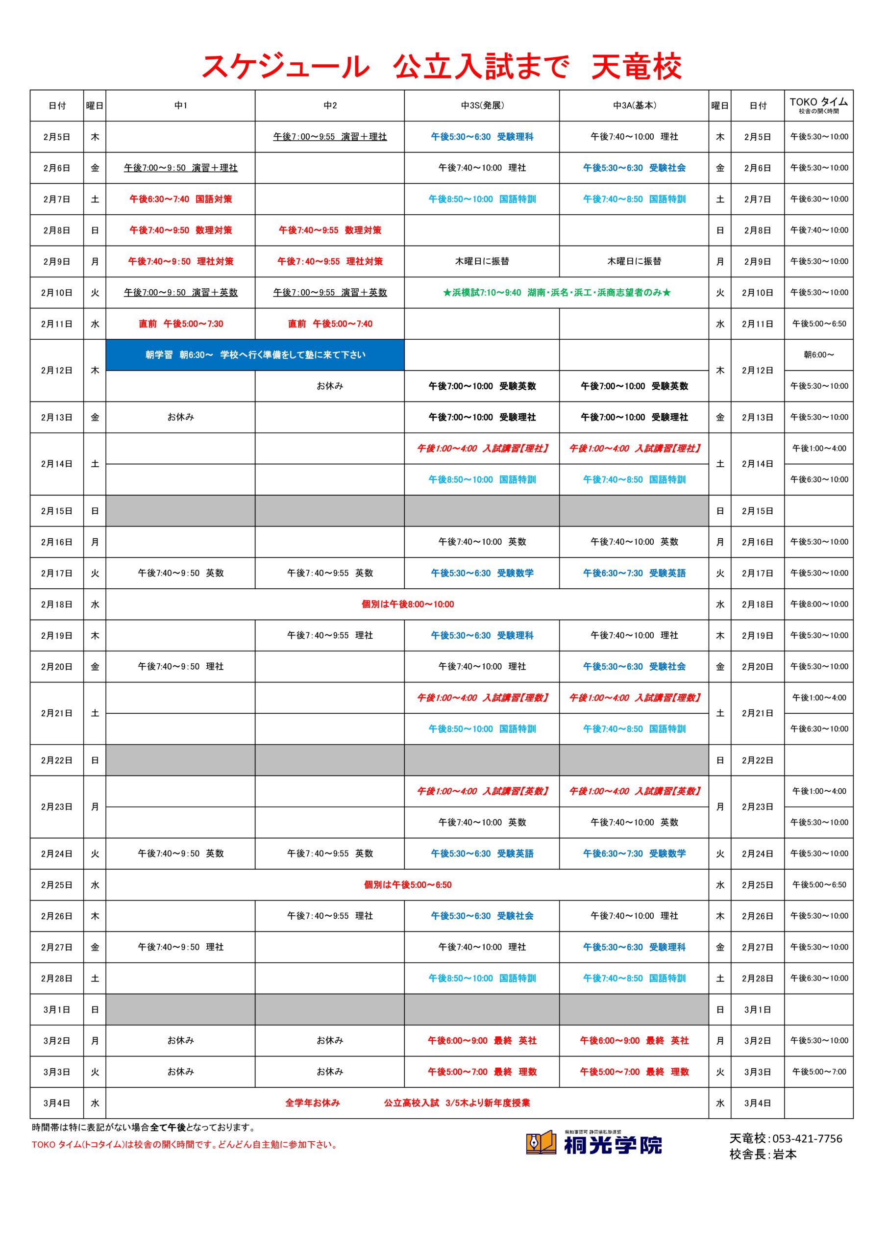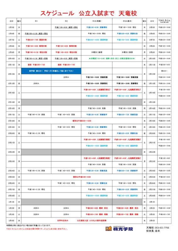 受験までの最後の日程になります。
