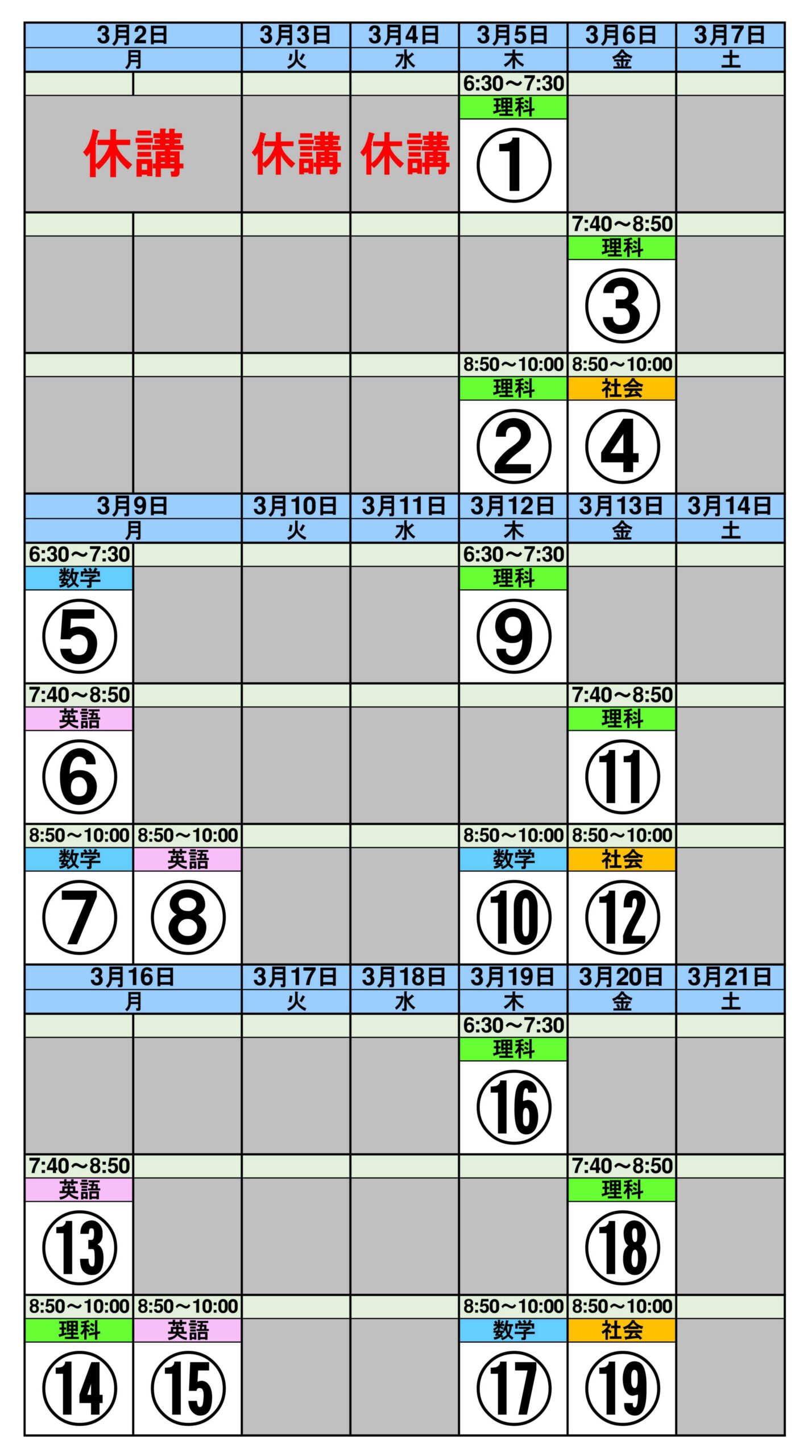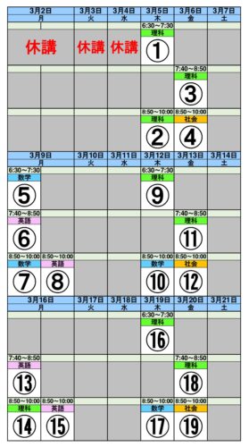 3/5~3/21の個別授業になります。