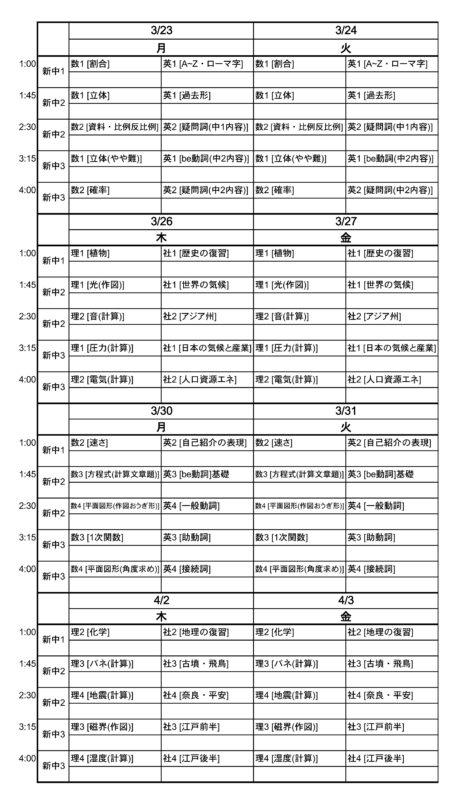 夜の個別のように事前のLINEは送らないので自分の選択した単元に従って参加をお願いします。
