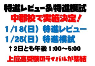 BLOG2026/01/23土日は標準模試&特進模試1/24(土)は午後1:00~4:45,校舎での標準模試があります。※中3は全員参加です。 1/25(日…