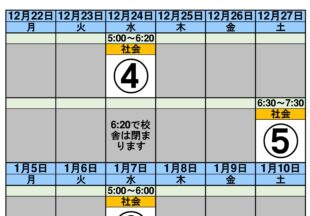 BLOG2025/12/20中3 12/22(月)か…いよいよ冬休みに入ります。 受験生は最後の追い込みをかけていきます。 来週,12/22の週は毎日お昼から…