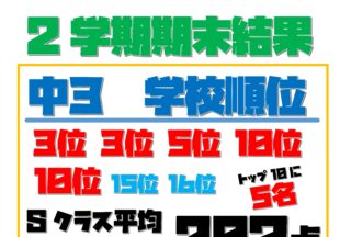 BLOG2025/12/23天竜校 2学期期末の成果…天竜校の2学期期末のテスト結果です。 各学年,天竜中学校のトップ10にランクインしています。 特に中3は…