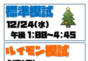 BLOG2025/12/21中3 模試があります 岩…受験生はクリスマスイブと年明けに模試があります。 コンパス・定規を持参して下さい。 12/24の標準模試…