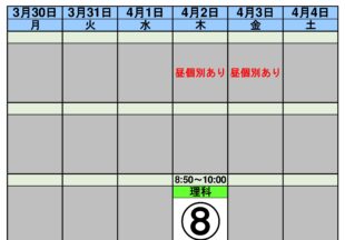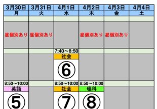 BLOG2026/04/024/2から4/11の個別…4/2から4/11の個別授業になります。