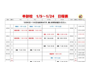 BLOG2025/12/301月の日程表 植原こんにちは。植原です。 1月の日程表を掲載いたします。 年明け最初の授業は、全学年集合です。 受…
