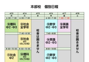 BLOG2026/04/18新中1の時間が変わります…こんにちは。植原です。 説明会や、先週の授業でも生徒にお伝えしましたが 来週20日(月)の週から、新…
