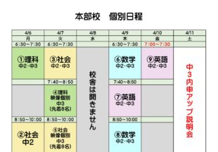 BLOG2026/04/064/6~4/18の個別日…大変お待たせいたしました! 本部校、4/6(月)からの個別日程です! 映像個別も復活します。8名限定なの…