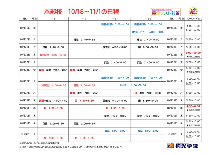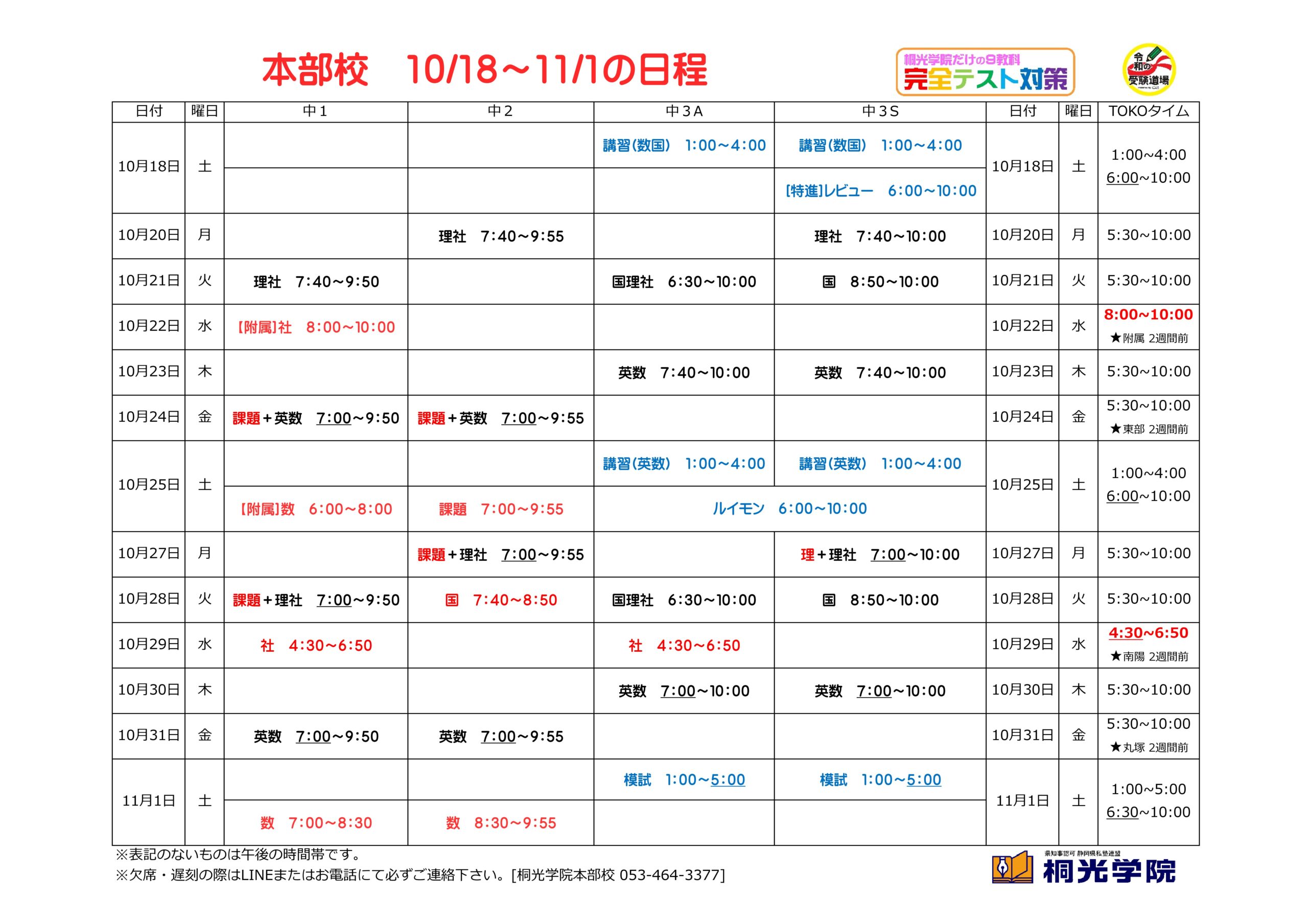11/1以降の日程もこれから配布していきますので今しばらくお待ちください。