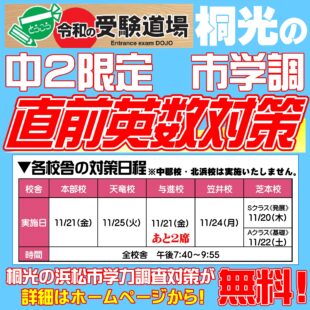 中学2年生は11月27日(木)の浜松市学力調査に向けて