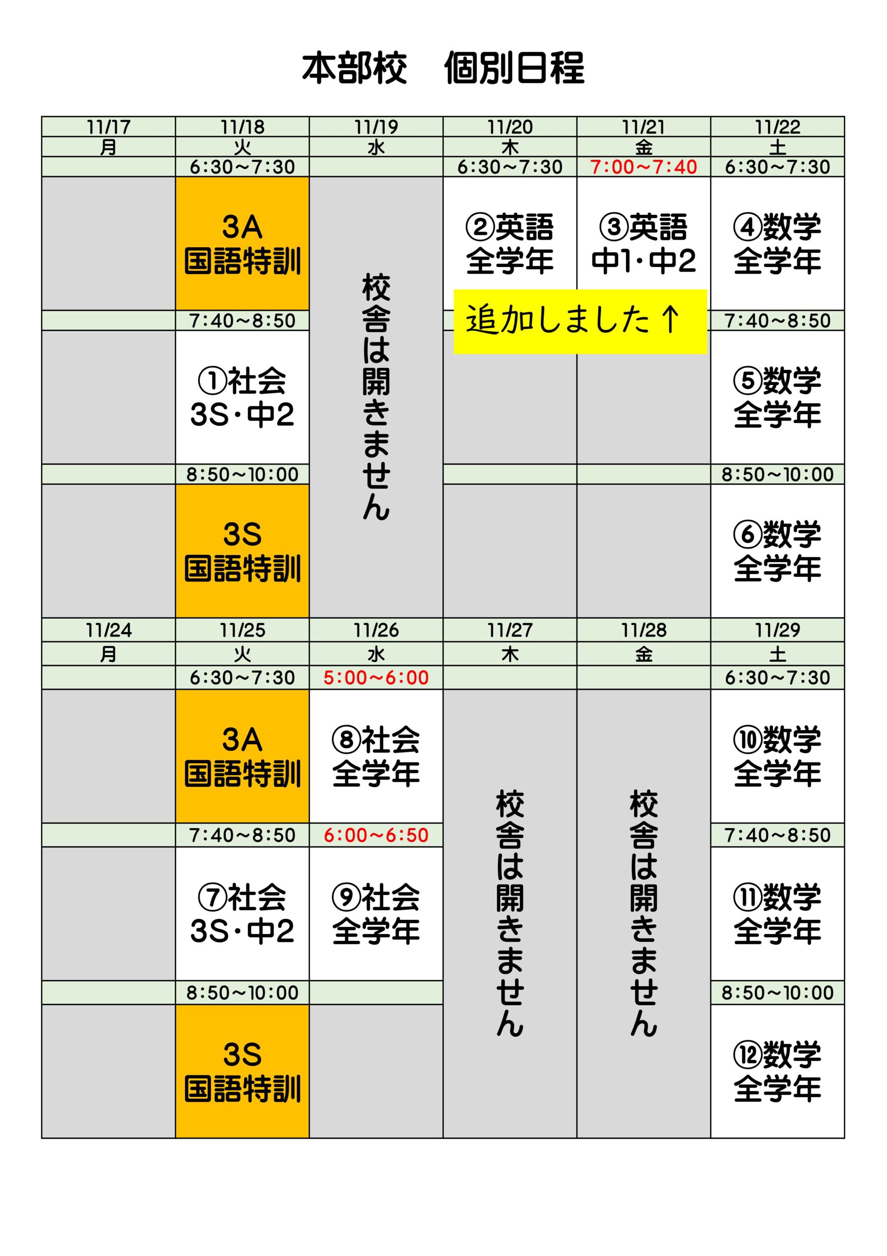 生徒には申込み用紙の控えを渡しているので、そちらからご確認いただけます。 欠席の場合は、お手数ですがLINEでお伝えください。よろしくお願いいたします。