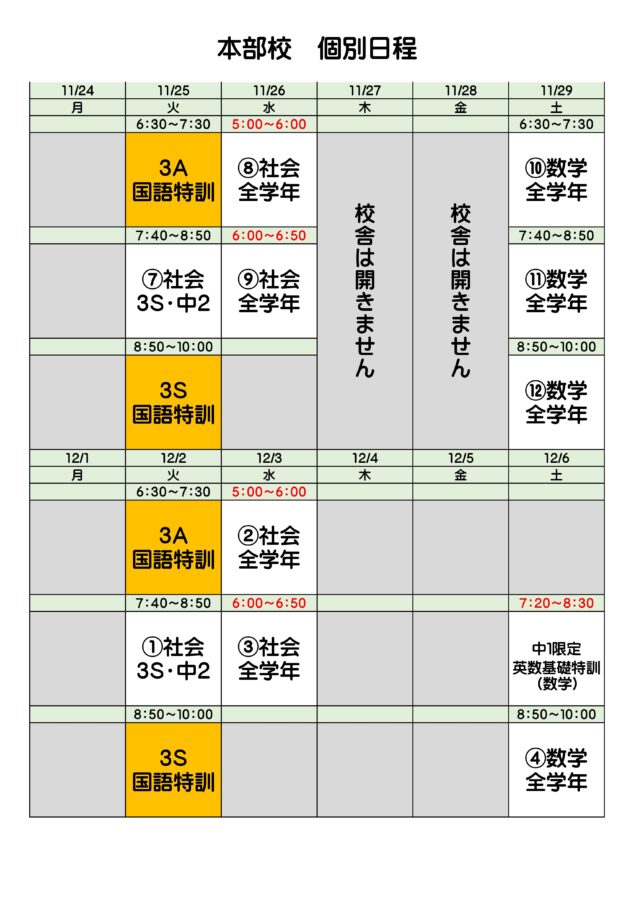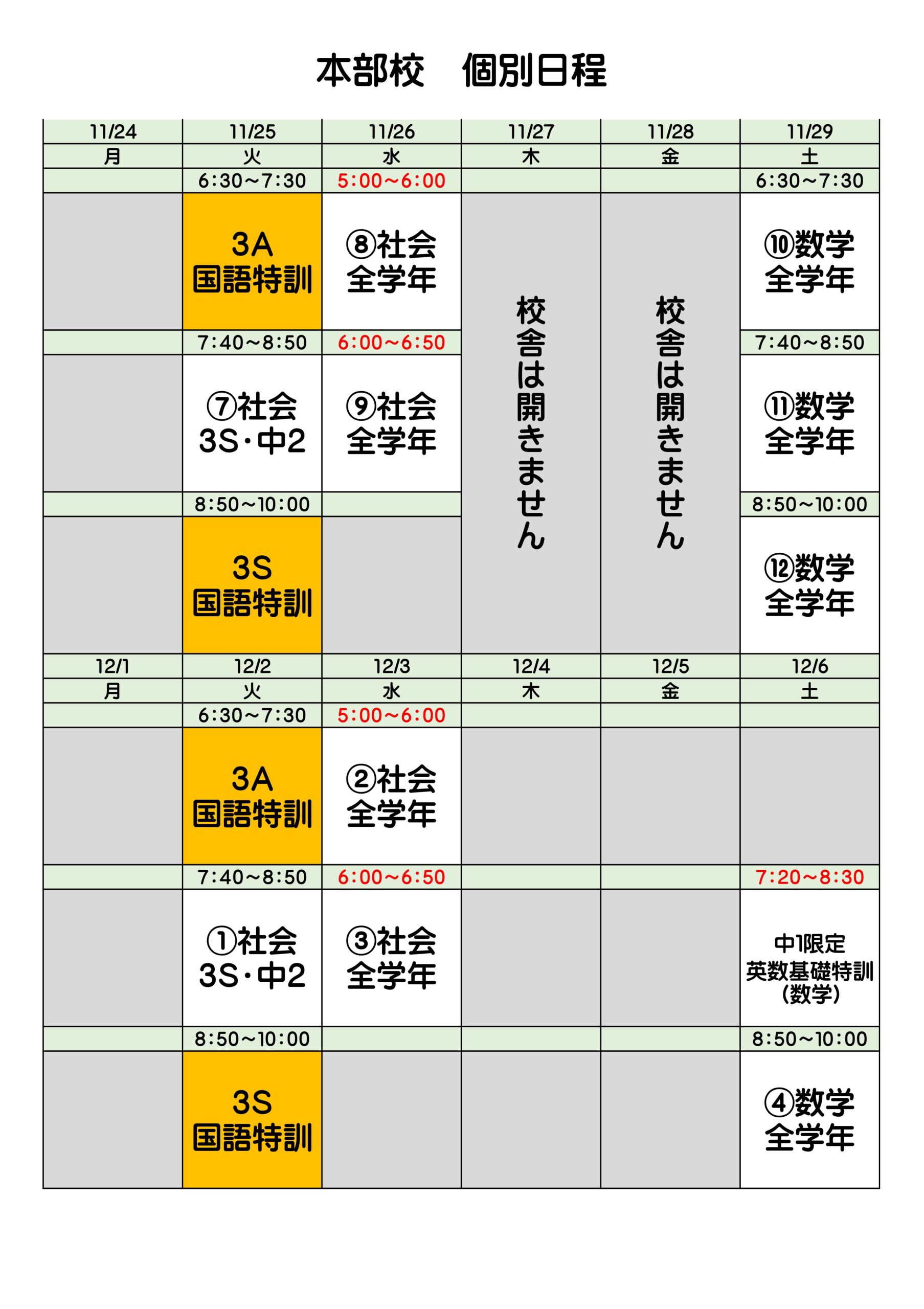 ペンキ塗装で校舎が使用できなくなる関係で、明日11/26(水)の個別授業は中止になります。