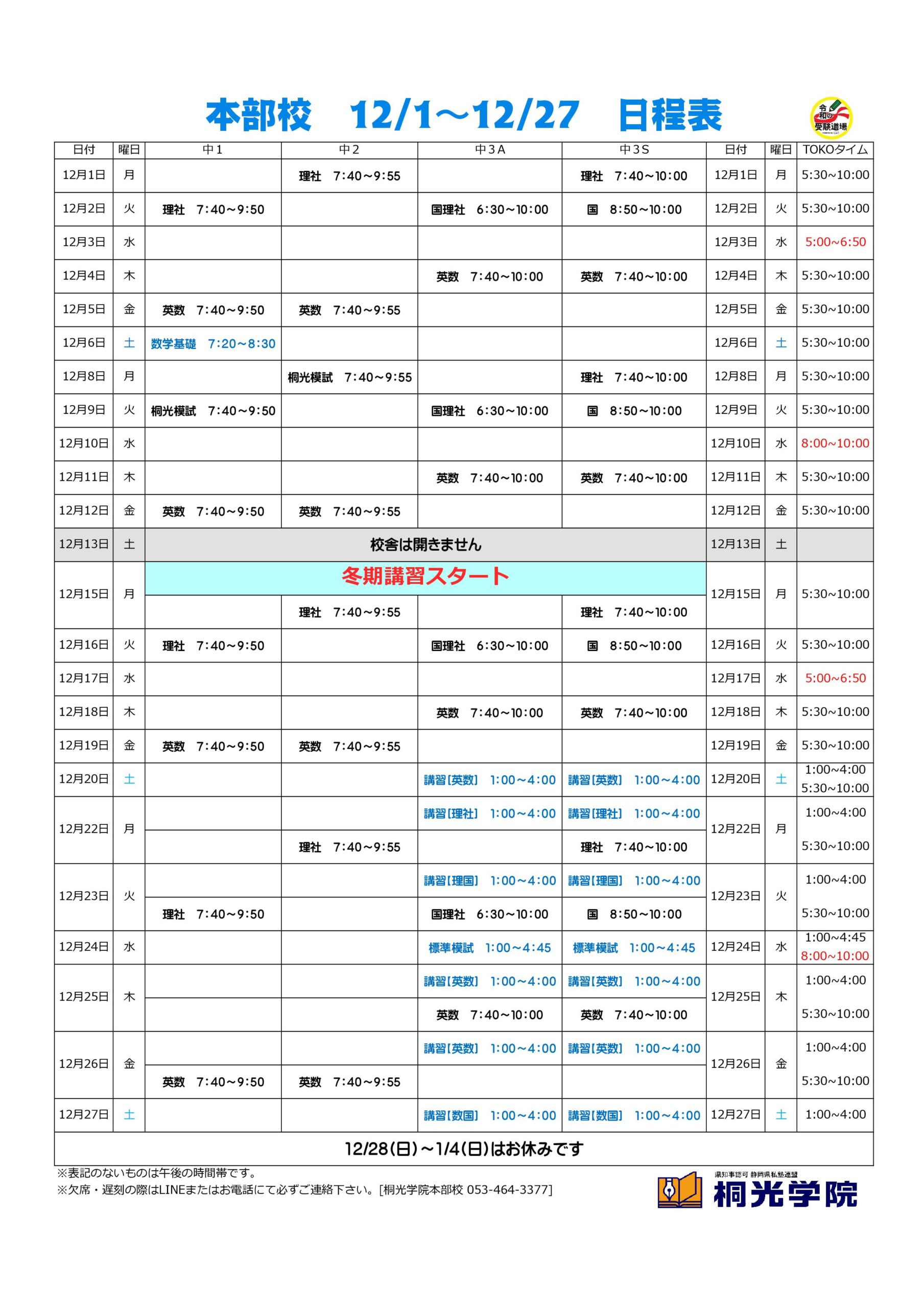 冬休みが始まりますと、中3はお昼の講習が始まります。