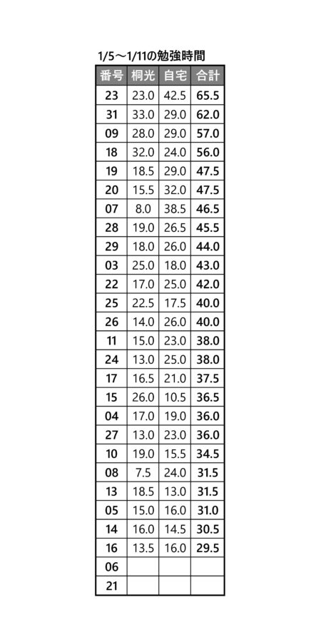 天竜校→→→1/5から1/11の勉強時間 岩本|天竜校BLOG|桐光学院